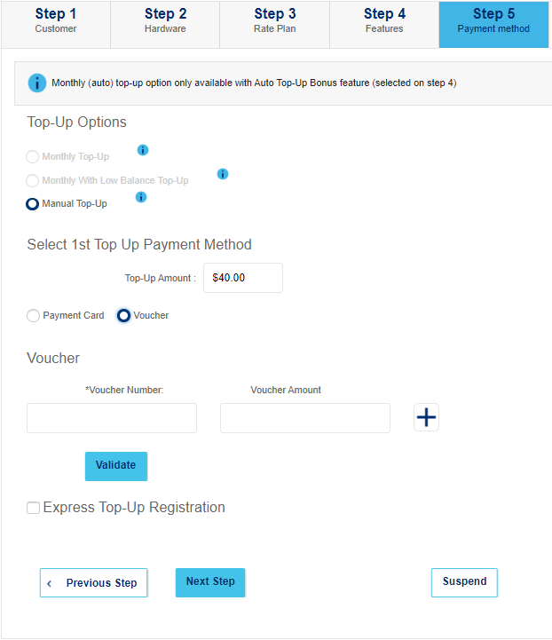 If the customer wants Auto Top-Up, click ‘Add’