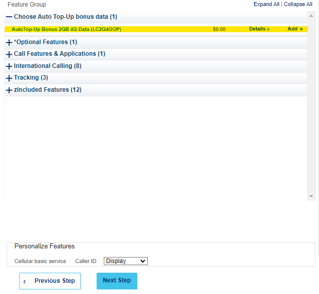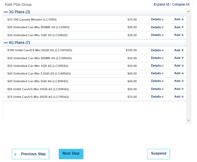 Expand the section of your customer’s chosen plan (3G or 4G)