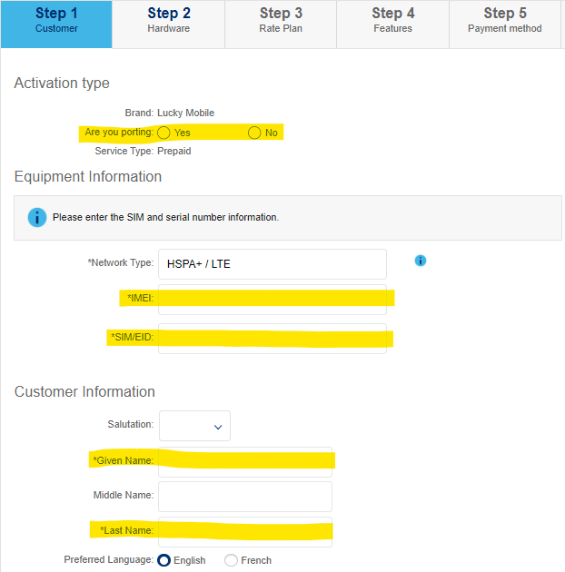 Email address: The customer’s email, or noemail@luckymobile.ca
