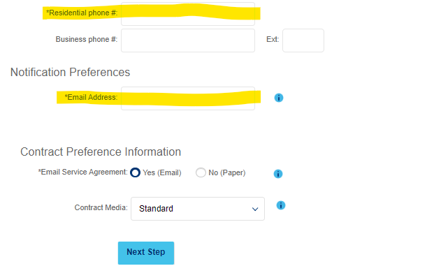 Residential phone #: The customer’s home phone number, or 111-111-1111