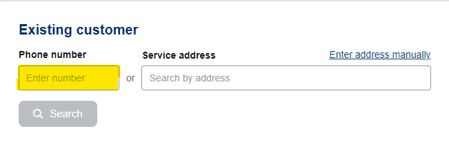 Under ‘existing customer’, enter the number for the SIM you just activated, then click ‘Search’