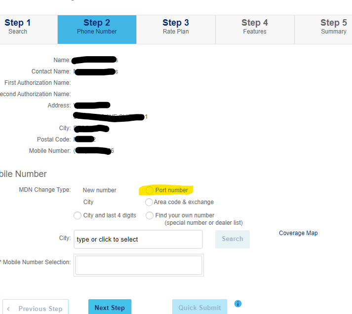 Under MDN Change Type, select ‘Port Number’ (highlighted yellow).