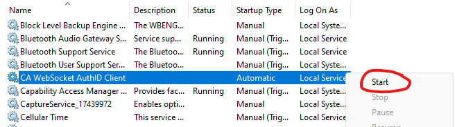 Search for ‘CA Websocket AuthID Client’.