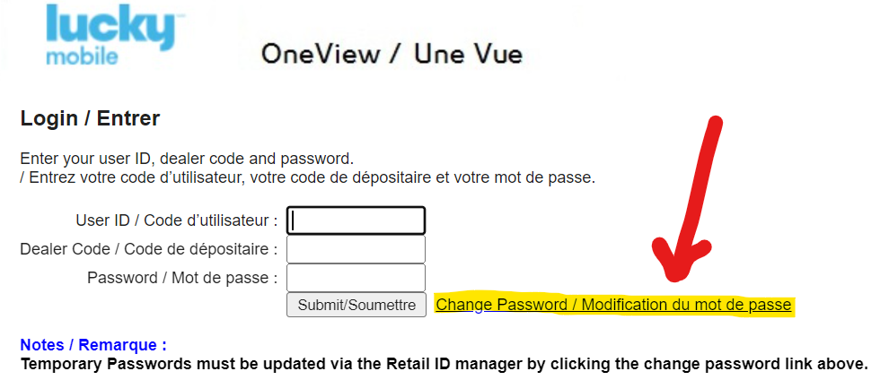 Click ‘Change Password / Modification du mot de passe’