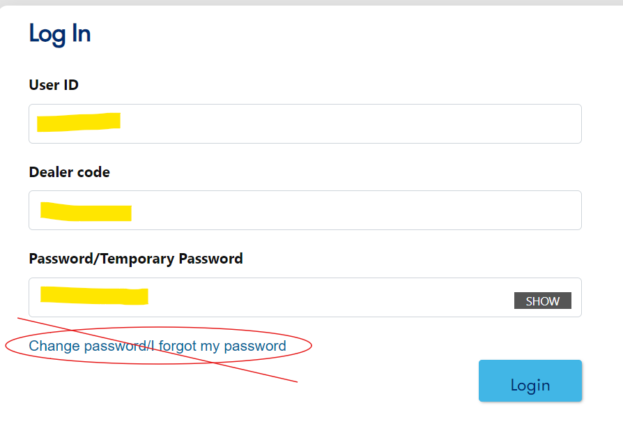 Instead, enter your User ID, Dealer code, and current password in the proper boxes, then click ‘Login’