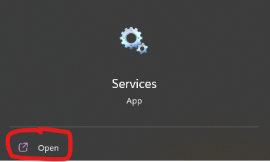 Press the Start button and search for ‘Services’.