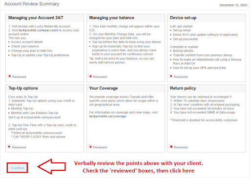 Review the plan details with your customer and ask them to confirm their choice